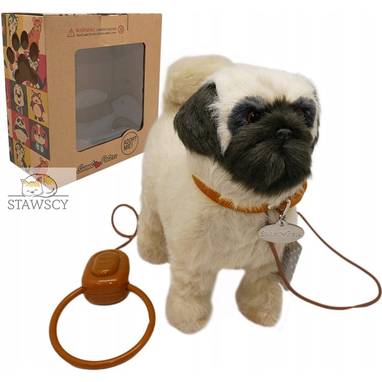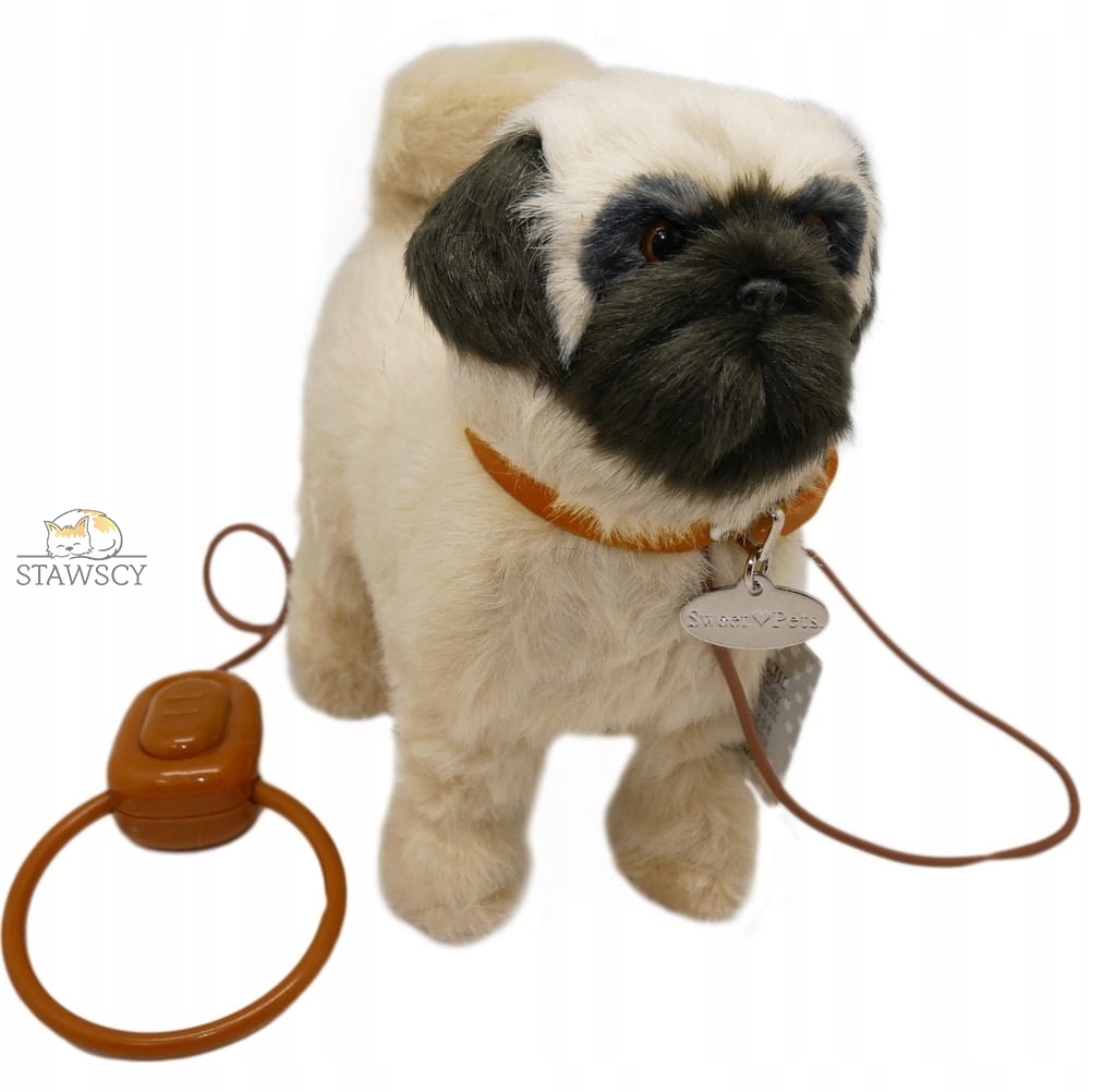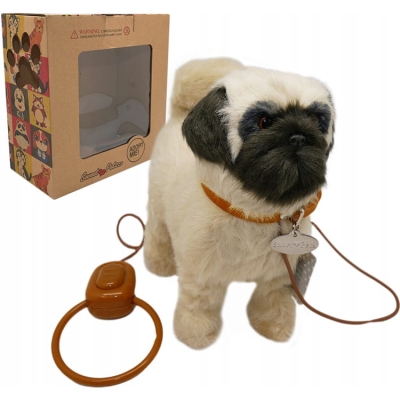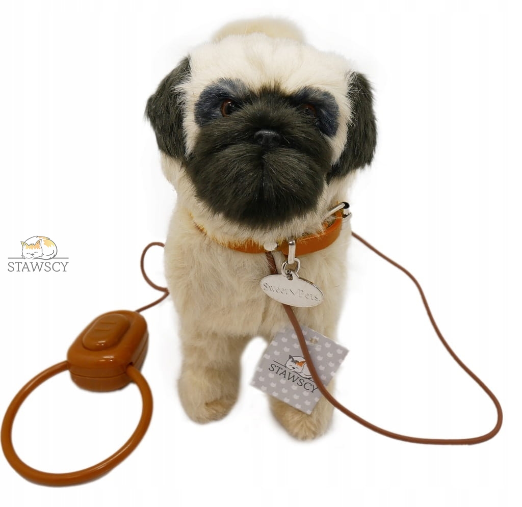 INTERAKTYWNY REALISTYCZNY PIESEK NA SMYCZY MOPS
