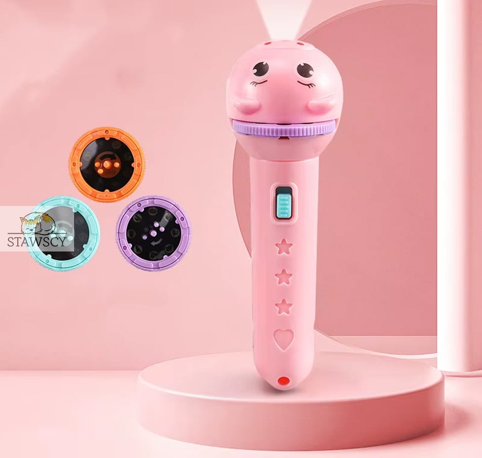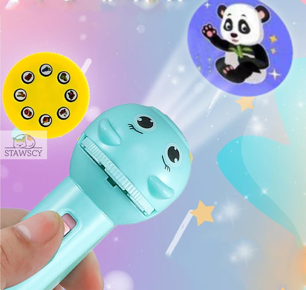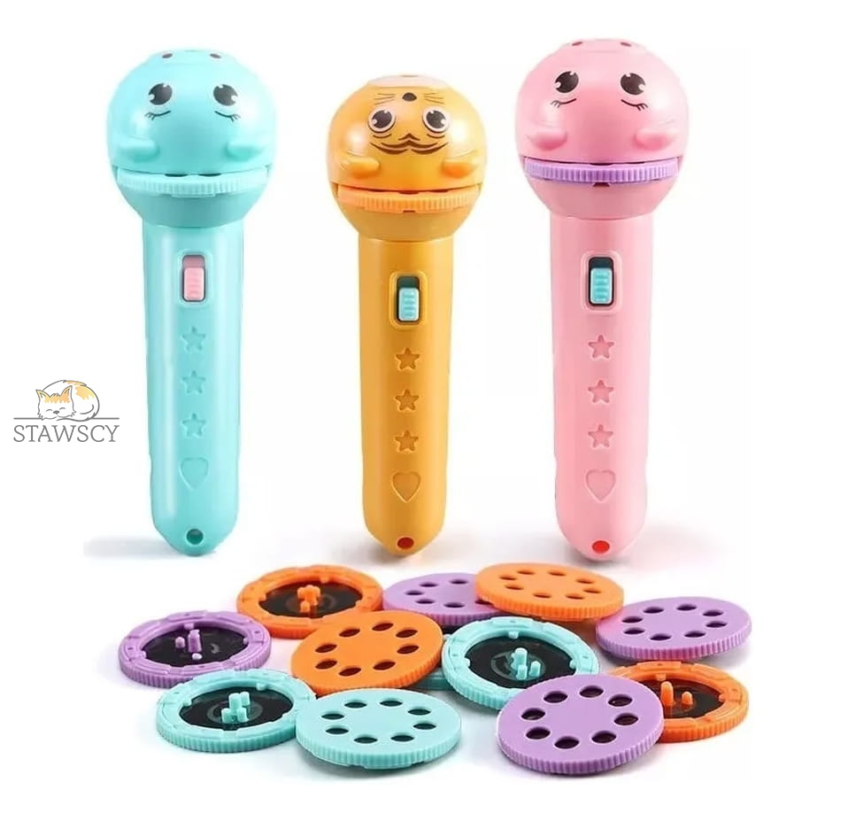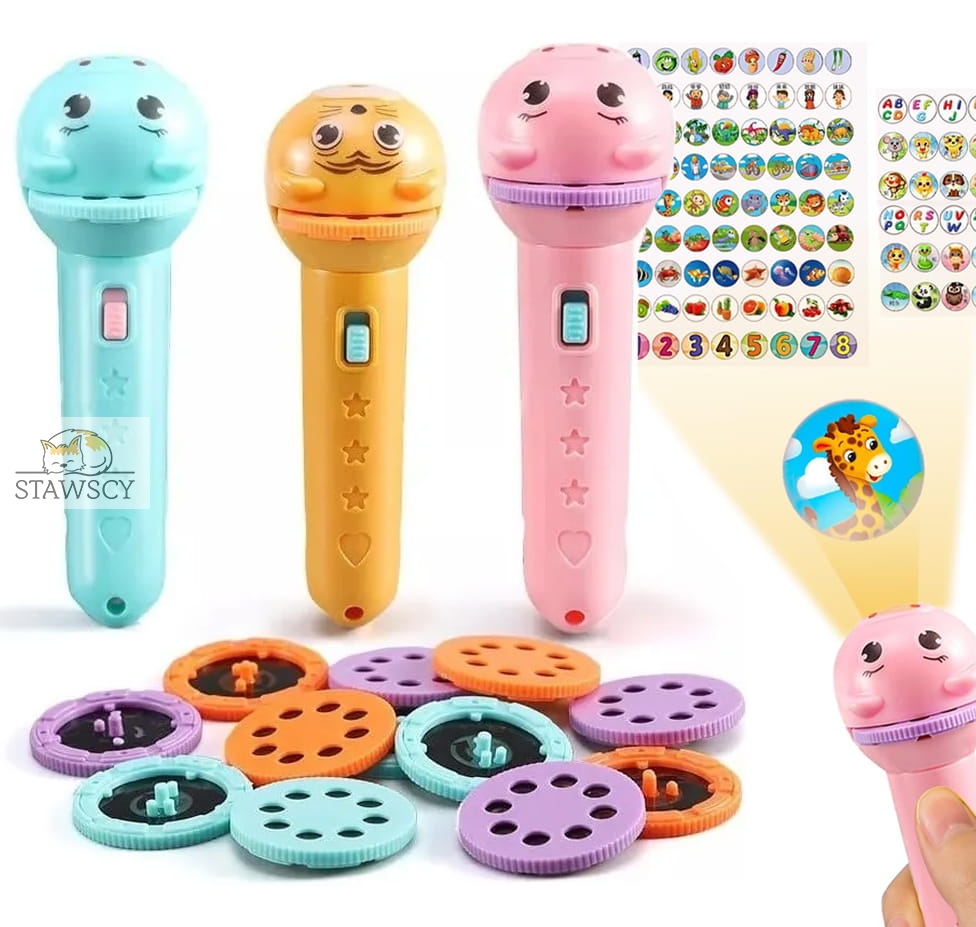 Nasz projektor to uroczy gadżet który rozwija kreatywność oraz poprawia wyobraźnię. Pozwala na wyświetlanie załączonych slajdów na ścianie lub może pełnić role zwykłej latarki.