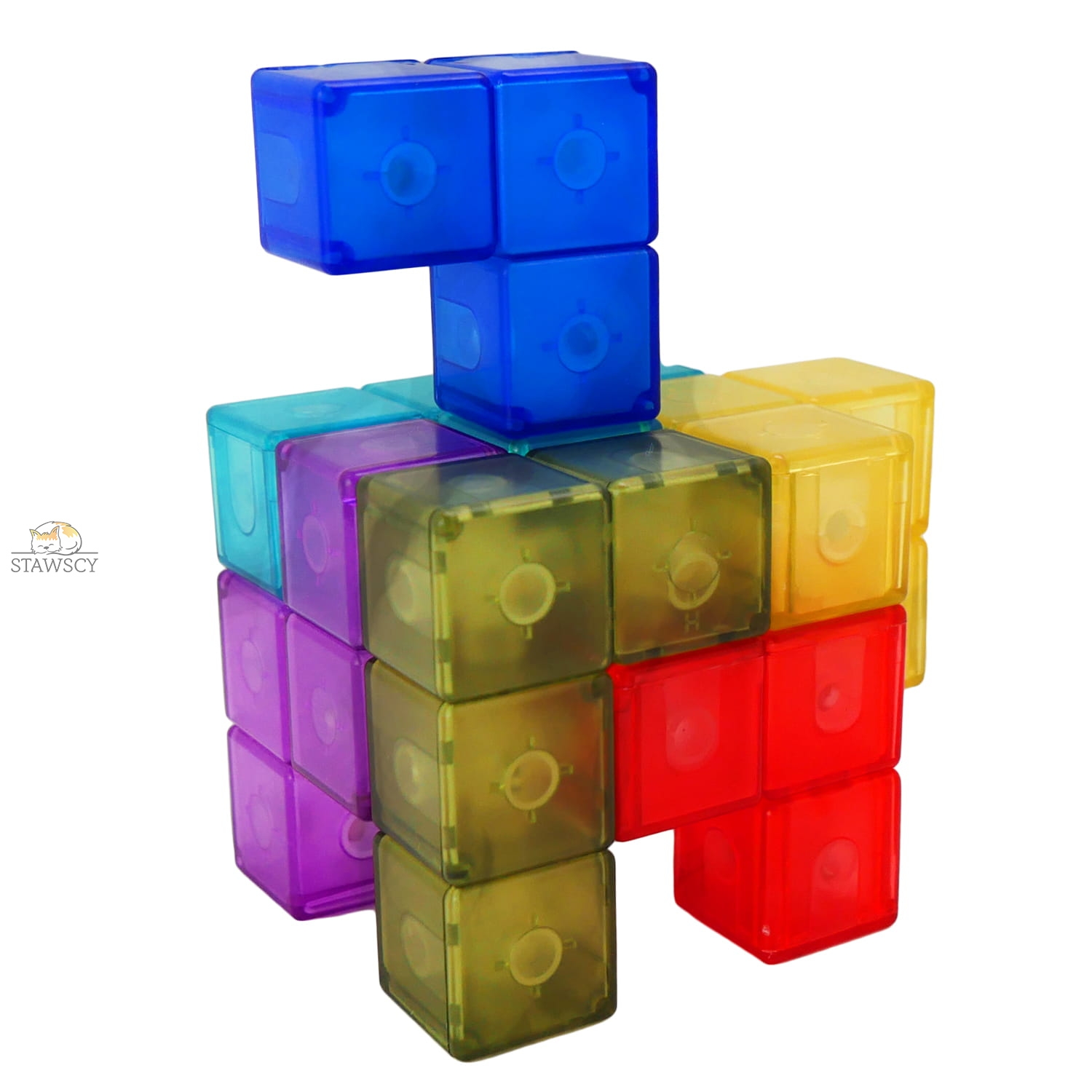 Kostka jest złożona z 7 elementów. Każdy ma magnesy, elementy mogą magicznie się łączyć. Magnesy obracają się i wyrównują, aby ułożyć się we właściwym miejscu wydając przyjemny dźwięk kliknięcia.