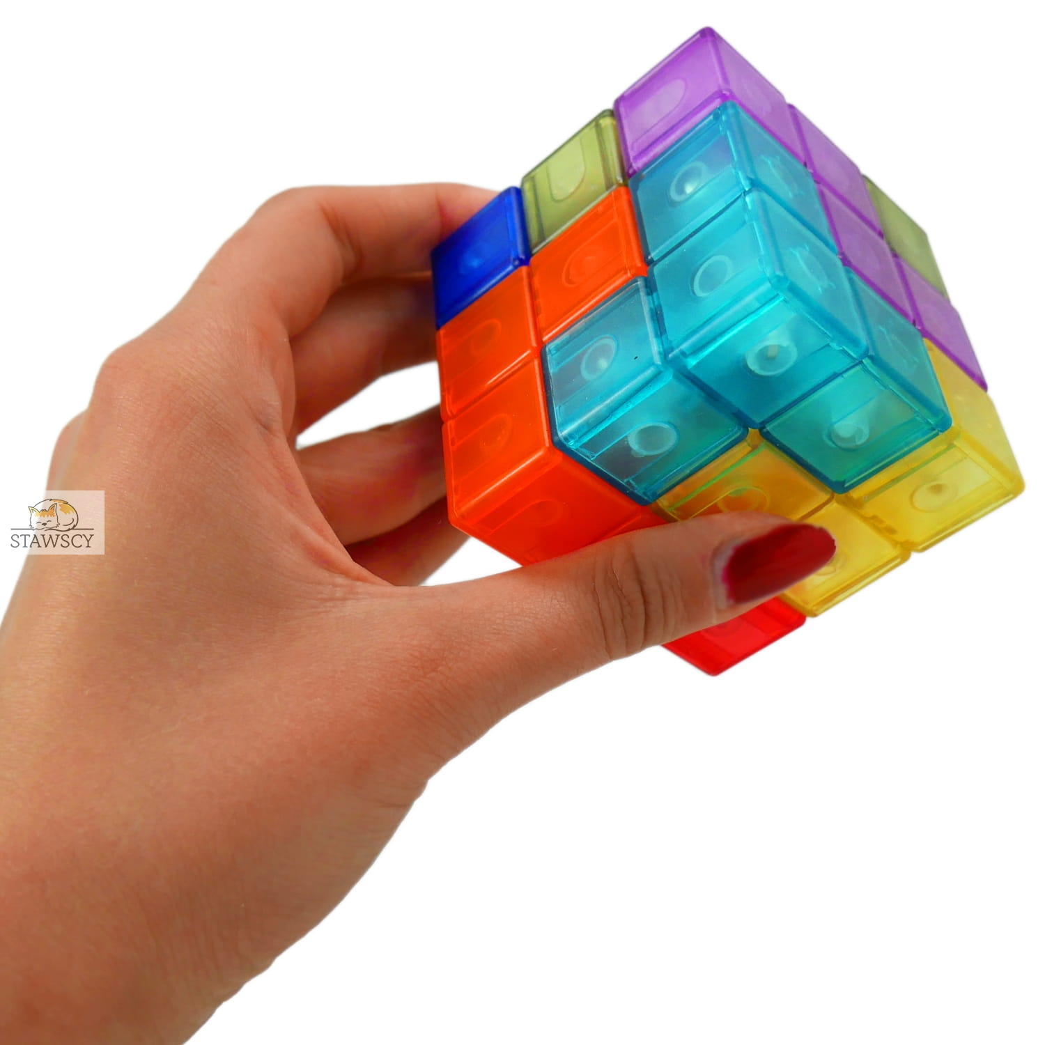 Nasza kostka to wesoły gadżet, zabawka antystresowa która rozwija kreatywność oraz poprawia wyobraźnię.