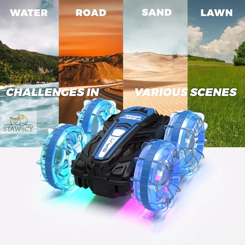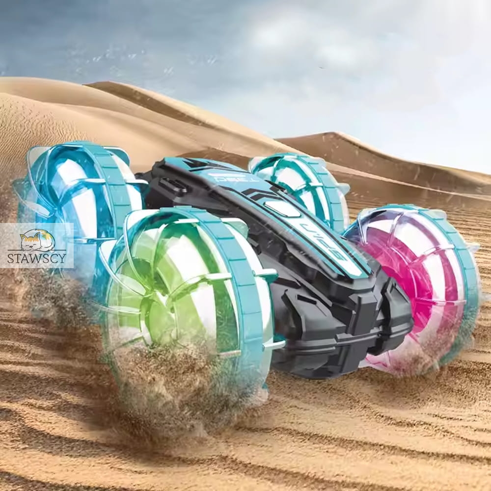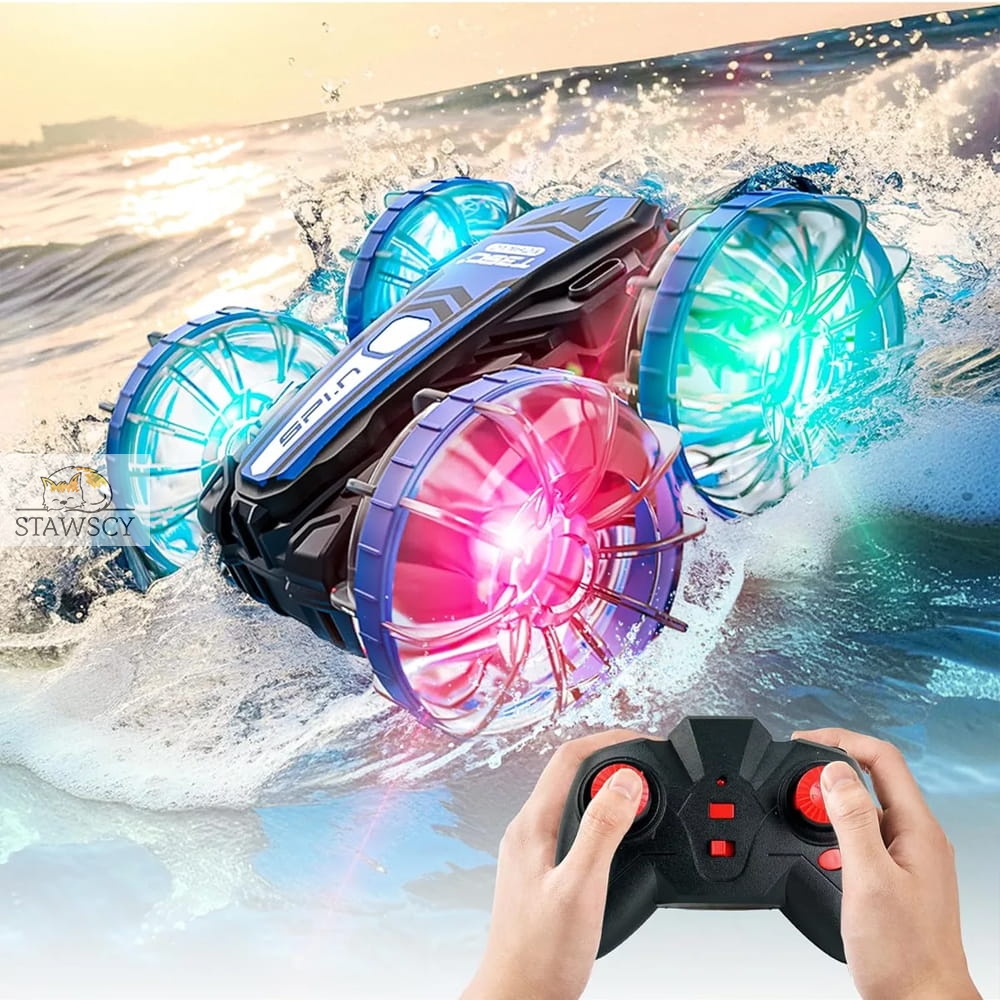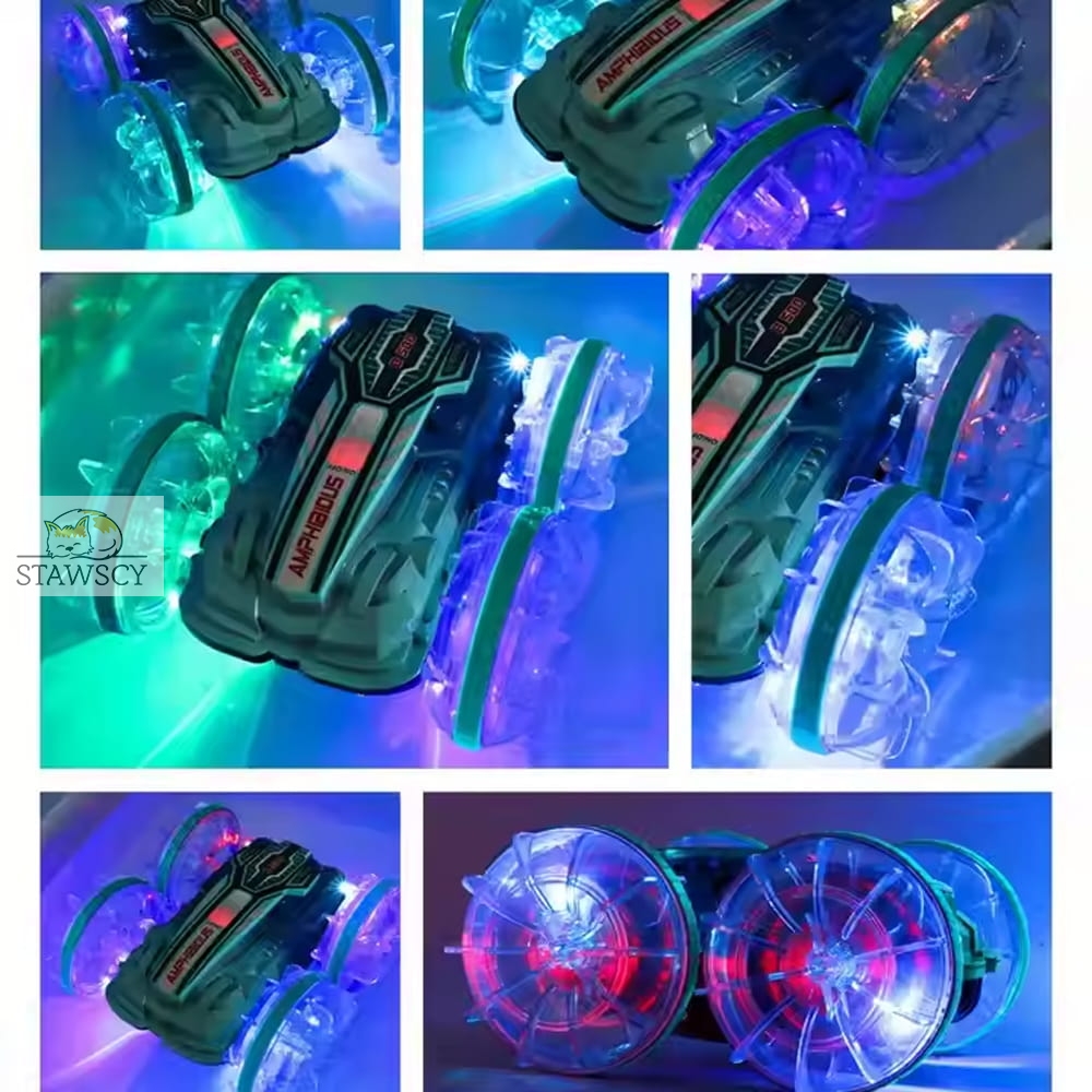 ➡️ Funkcja amfibii: Pojazd jest zaprojektowany do jazdy w różnych środowiskach – porusza się płynnie po lądzie, kałużach, a nawet na powierzchni wody.