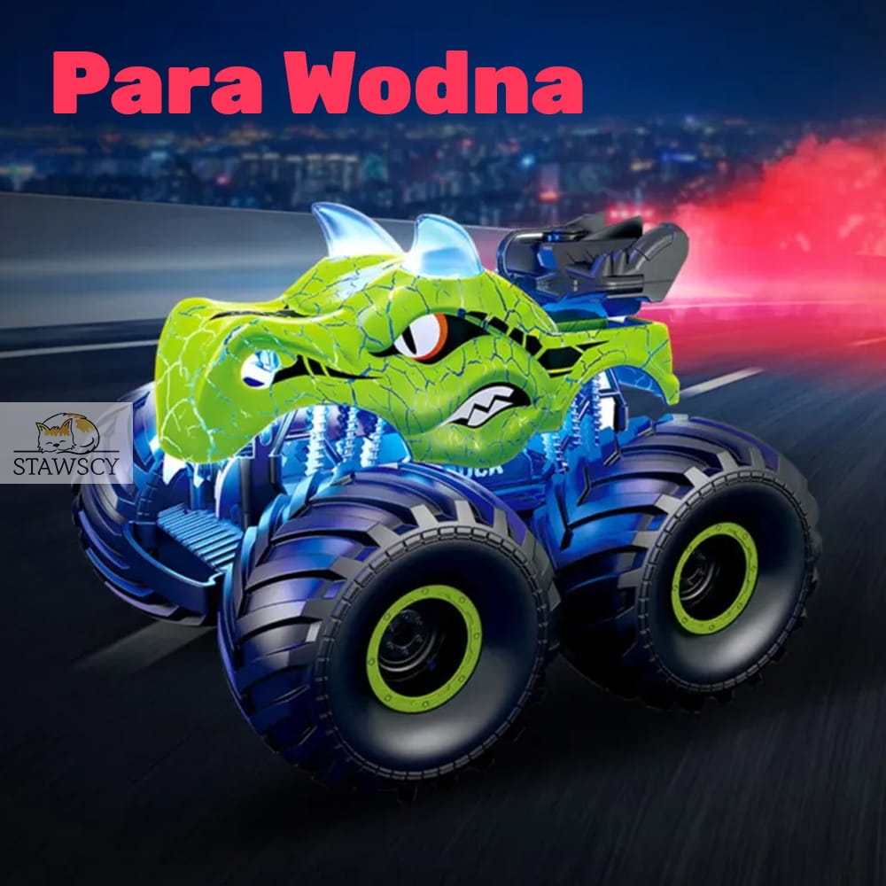 - Samochód dinozaur z światłem LED, dźwiękiem i funkcją pary wodnej - 18 x 17 x 14 cm