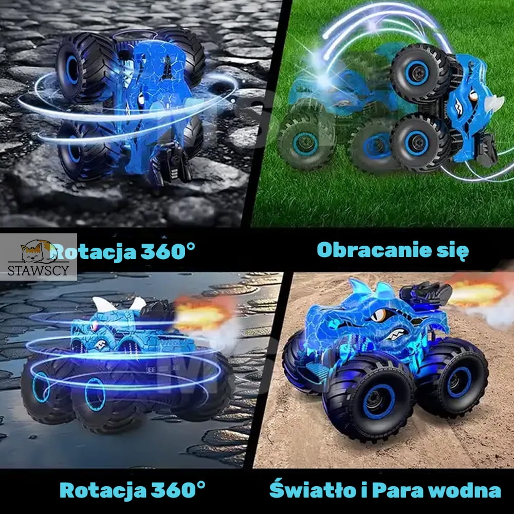 ➡️ Efekty Obracania 360°: Samochód potrafi wykonywać widowiskowe obroty o 360 stopni, co czyni go idealnym do trików i zabaw kaskaderskich.