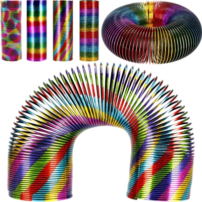 Ta kolorowa sprężynka jest wyjątkowa, ponieważ łączy w sobie prostotę i efektowność. Jej tęczowe barwy przyciągają uwagę, a możliwość rozciągania, skręcania i obserwowania jej ruchu sprawia, że dostarcza świetnej zabawy.