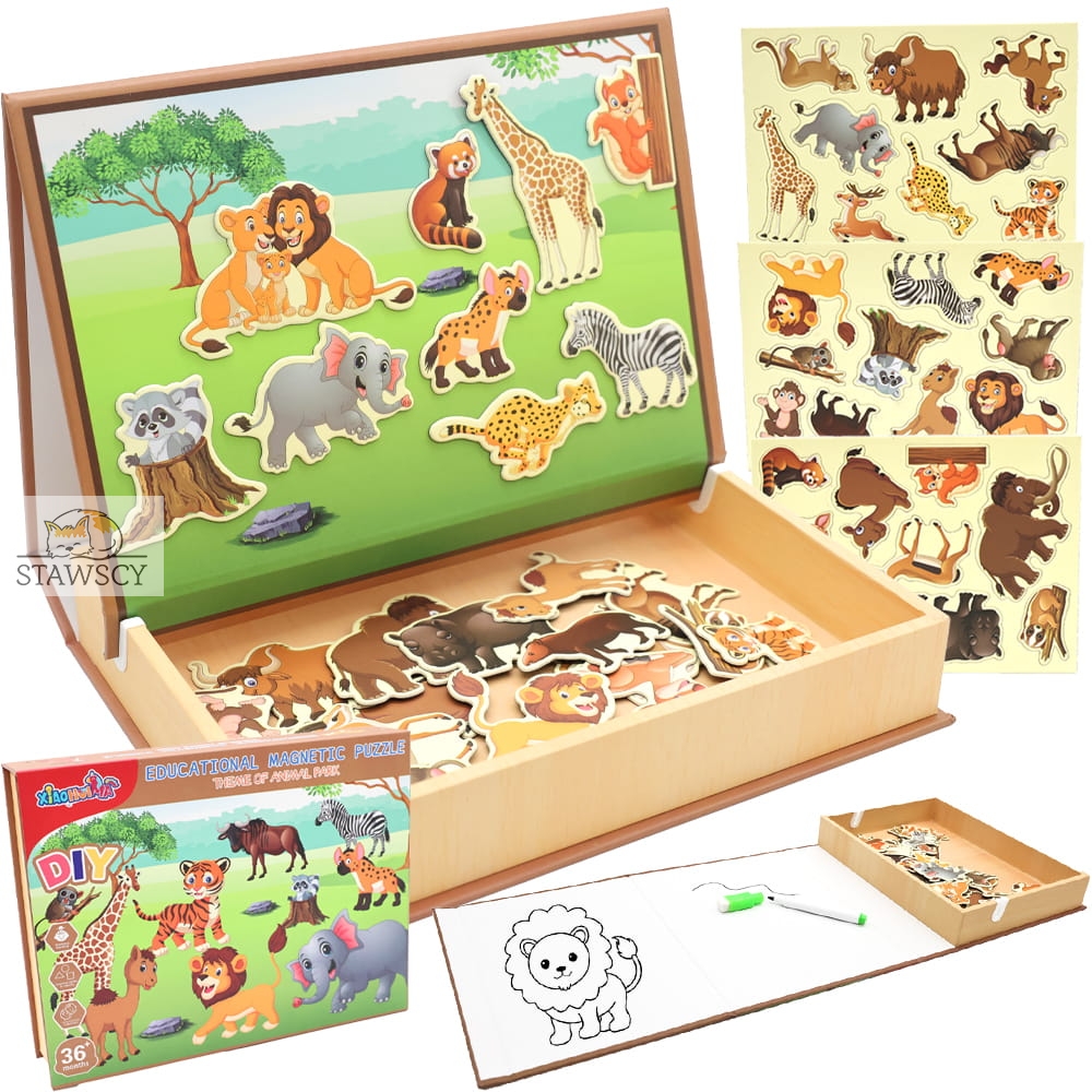 Ta edukacyjna układanka magnetyczna z motywem dzikich zwierząt to idealna zabawka, która łączy naukę z zabawą!