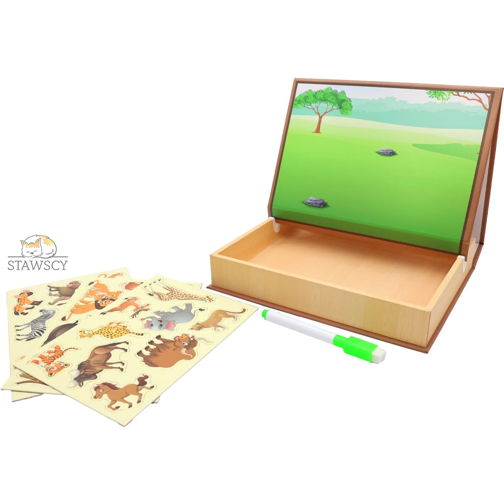 - Nauka przez zabawę: Tablica magnetyczna z pięknymi grafikami wspiera rozwój wyobraźni i zdolności manualnych, a możliwość rysowania na odwrocie dodatkowo rozwija wyobraźnie.