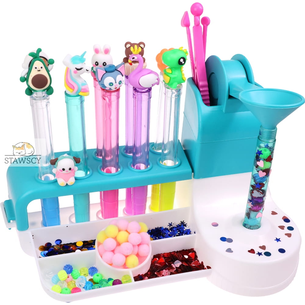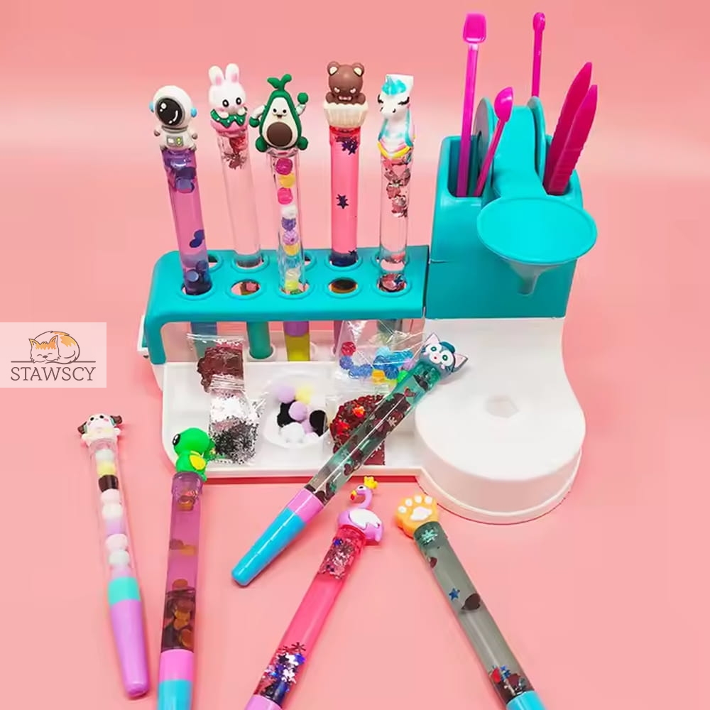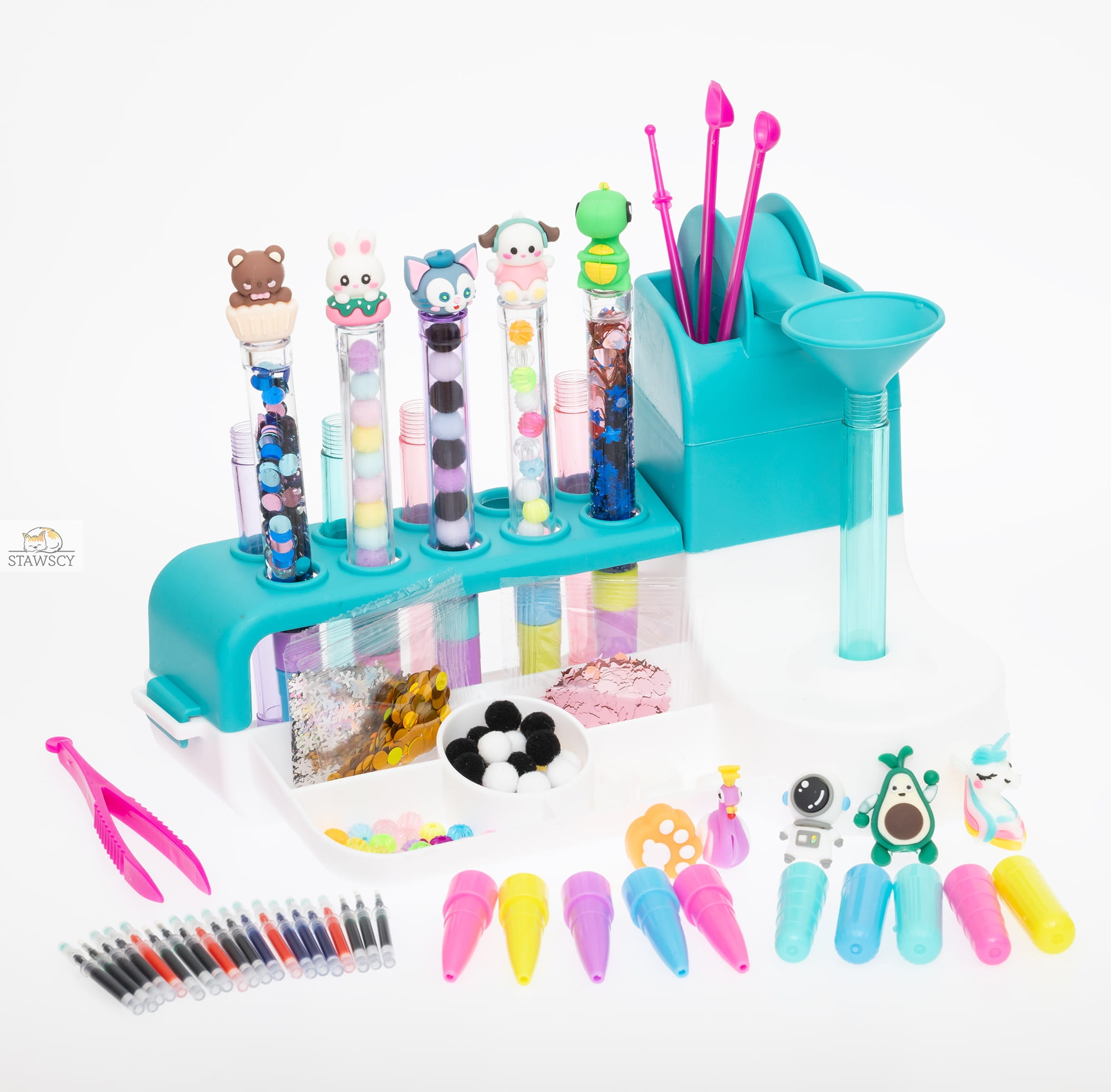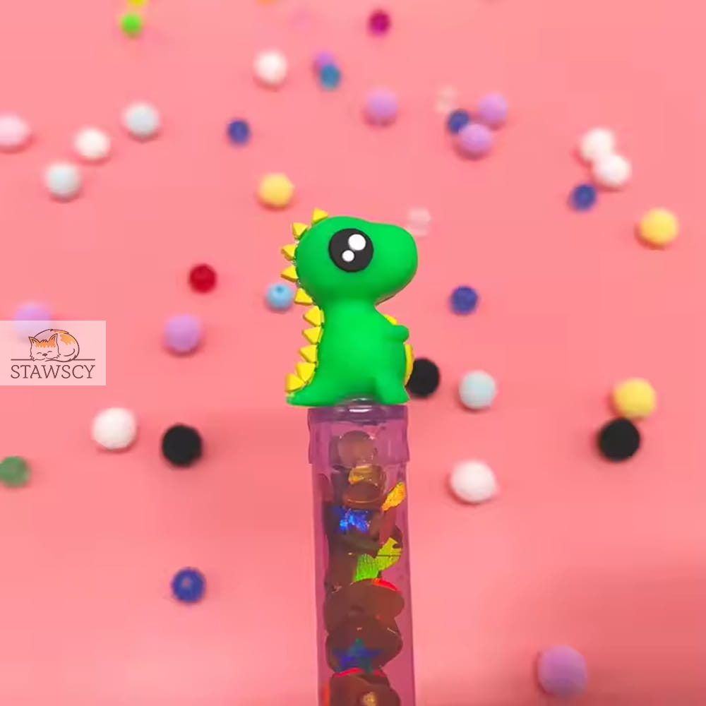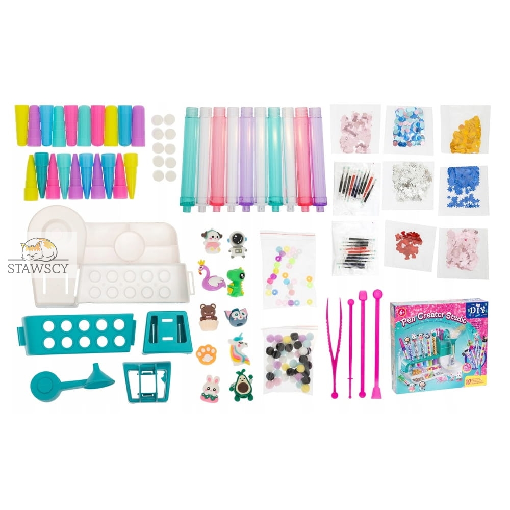 Ta zabawka jest kreatywna, ponieważ pozwala dzieciom samodzielnie projektować i tworzyć własne długopisy – od wyboru kolorów, przez dobór dekoracyjnych wypełnień (jak brokat, pomponiki, konfetti), aż po dodawanie zabawnych nakładek w kształcie zwierzątek czy postaci. Nie ma jednego „dobrego” sposobu na zrobienie długopisu – każde dziecko może stworzyć coś zupełnie innego, zgodnie ze swoim gustem i wyobraźnią.
